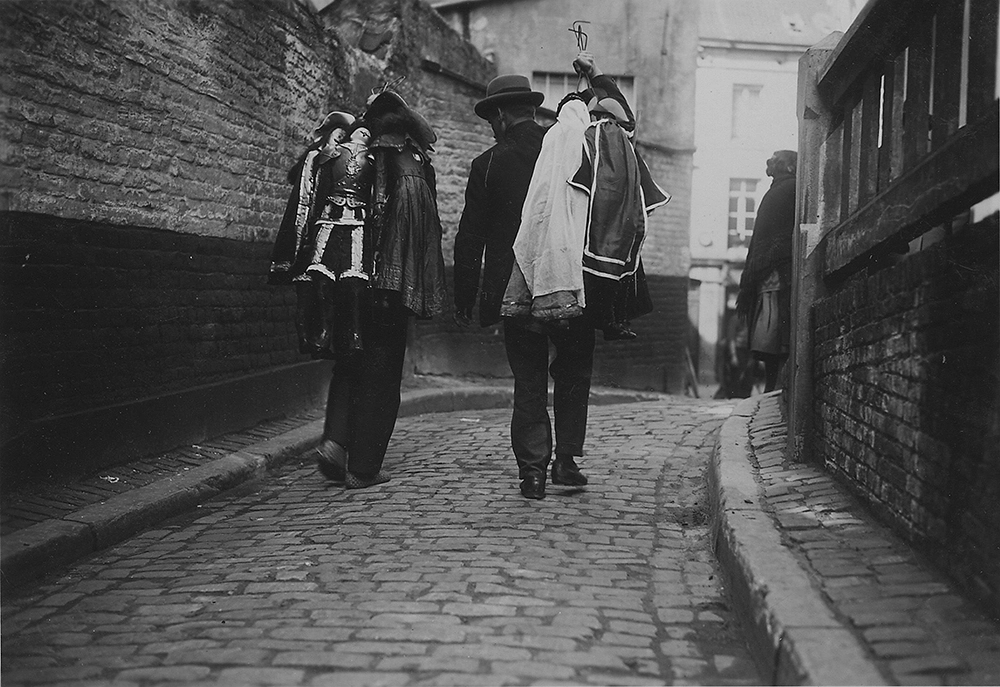Dramaturge belge d’expression française bien qu’issu d’une famille flamande, Adémar Martens, dit Michel de Ghelderode, produisit, entre 1924 et 1926, cinq œuvres pour un genre qu’il affectionna particulièrement, les marionnettes bruxelloises. Le Mystère de la Passion de Notre-Seigneur Jésus-Christ, La Tentation de saint Antoine, Duvelor ou la Farce du Diable vieux, La Farce de la Mort qui faillit trépasser, Le Massacre des Innocents, oeuvres prétendues « reconstituées » d’après les souvenirs de vieux montreurs mais en réalité écrites par lui-même, illustrent son goût pour la mystification.